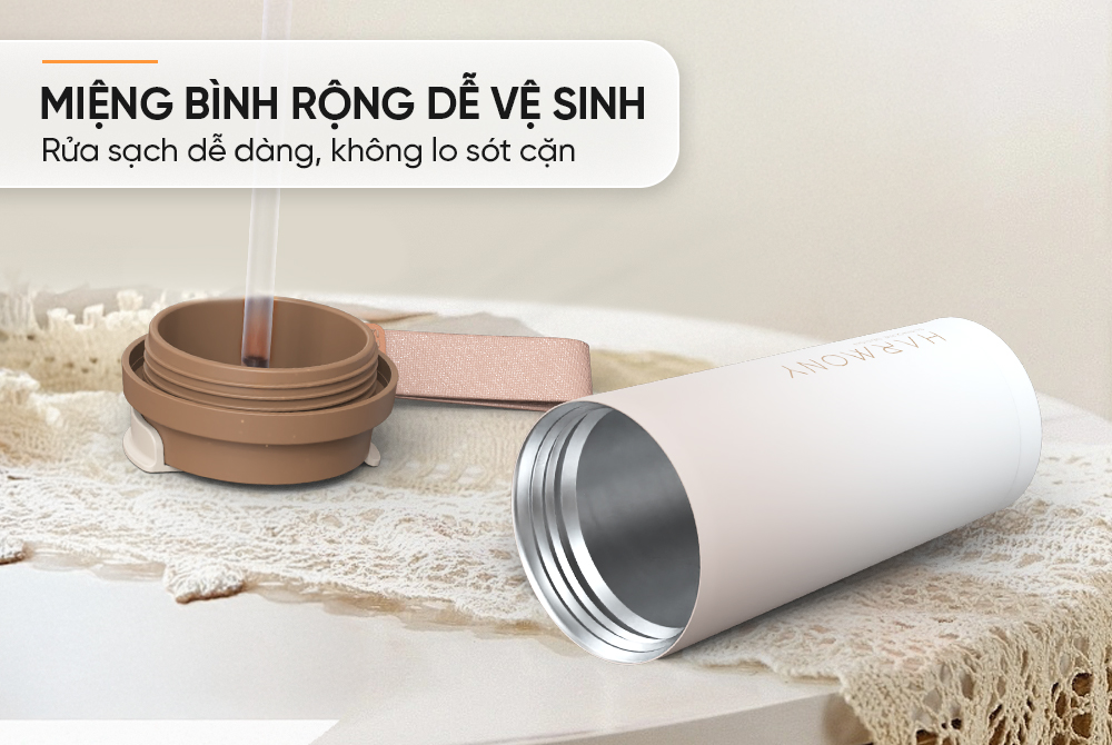 Miệng bình lớn giúp vệ sinh nhanh chóng, không lo sót cặn, giữ hương vị tinh khiết cho mỗi lần sử dụng.