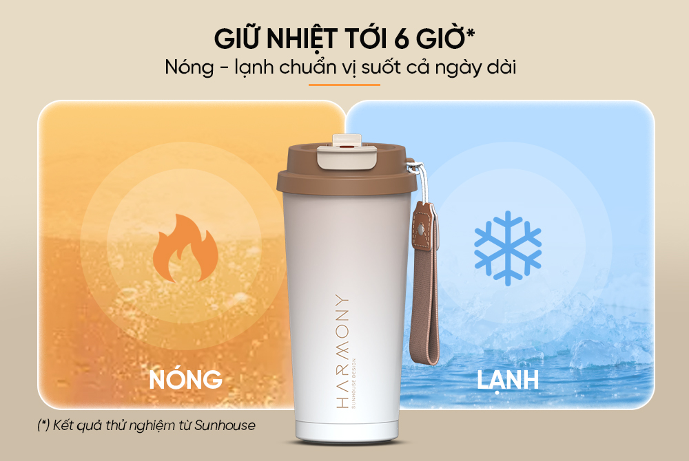 Nhờ cấu tạo 2 lớp INOX cao cấp cùng thiết kế cách nhiệt hiệu quả, Bình giữ nhiệt Harmony 500ml SUNHOUSE KS-TU500HB có khả năng giữ nóng hoặc lạnh lên đến 6 giờ*, giúp đồ uống duy trì nhiệt độ lý tưởng suốt cả ngày dài.