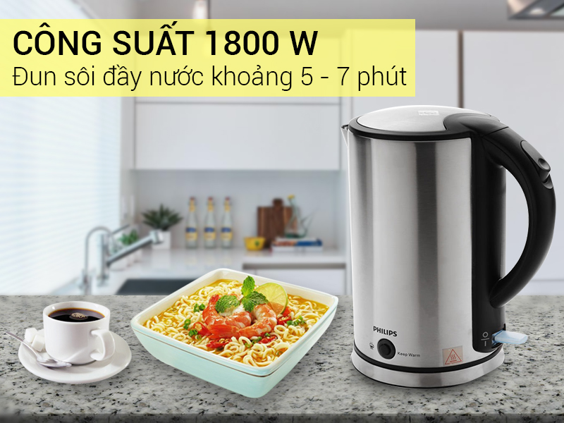 Ấm đun siêu tốc nấu nước nhanh sôi với công suất mạnh mẽ