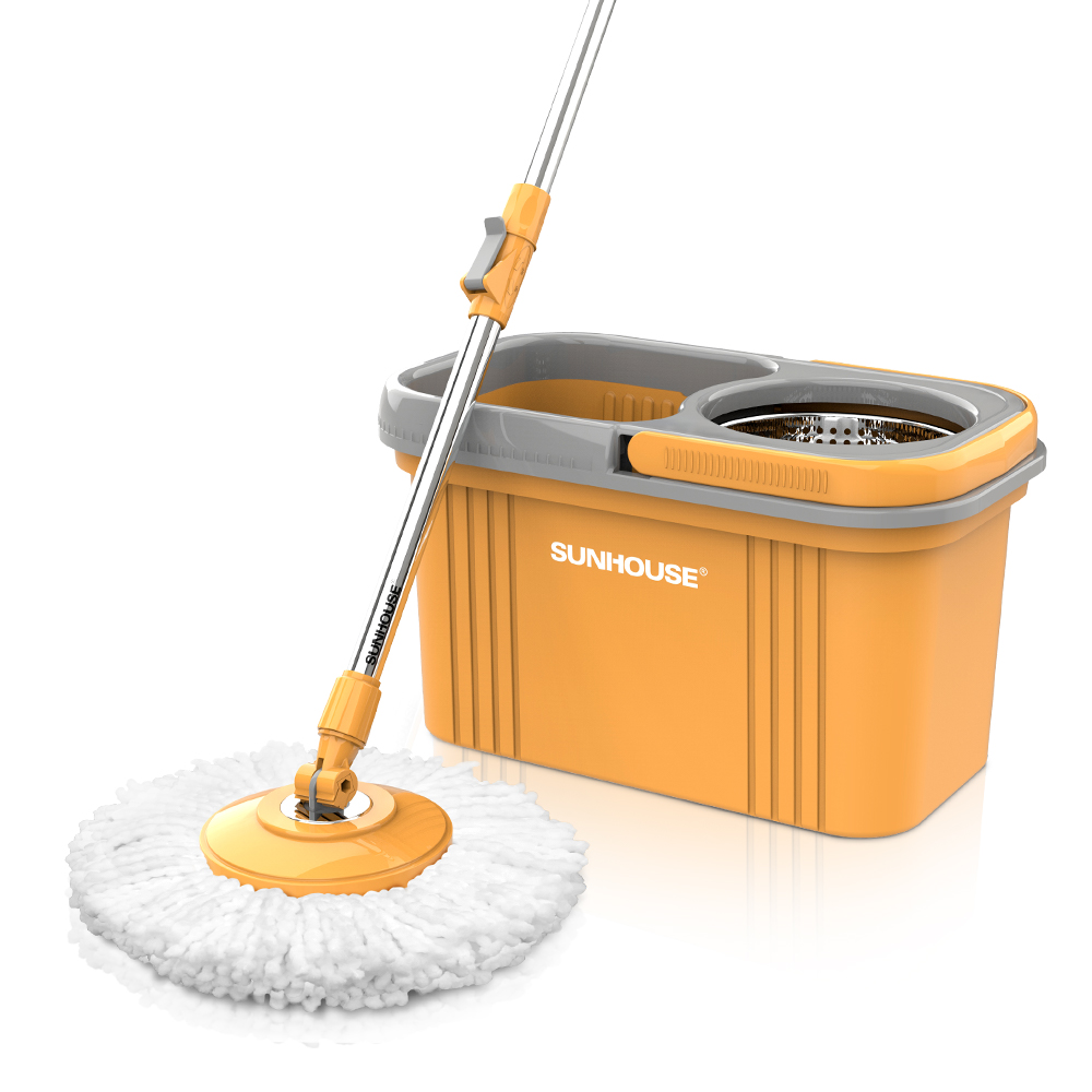 Bộ lau nhà là vật dụng cần thiết cho mỗi gia đình. Sản phẩm Bộ lau nhà xoay 360 độ SUNHOUSE KS-CL350PO bao gồm một thùng giặt có chứa lồng vắt và 1 cây lau. Với điểm nhấn là bộ tạo chuyển động 360 độ siêu bền, bộ lau nhà SUNHOUSE bạn sẽ dễ dàng lau sạch bụi bẩn trong mọi ngóc ngách và cả những nơi khó lau dọn như gầm giường, gầm bàn, tủ, ghế… giữ cho ngôi nhà của bạn luôn sạch sẽ và thoáng mát.