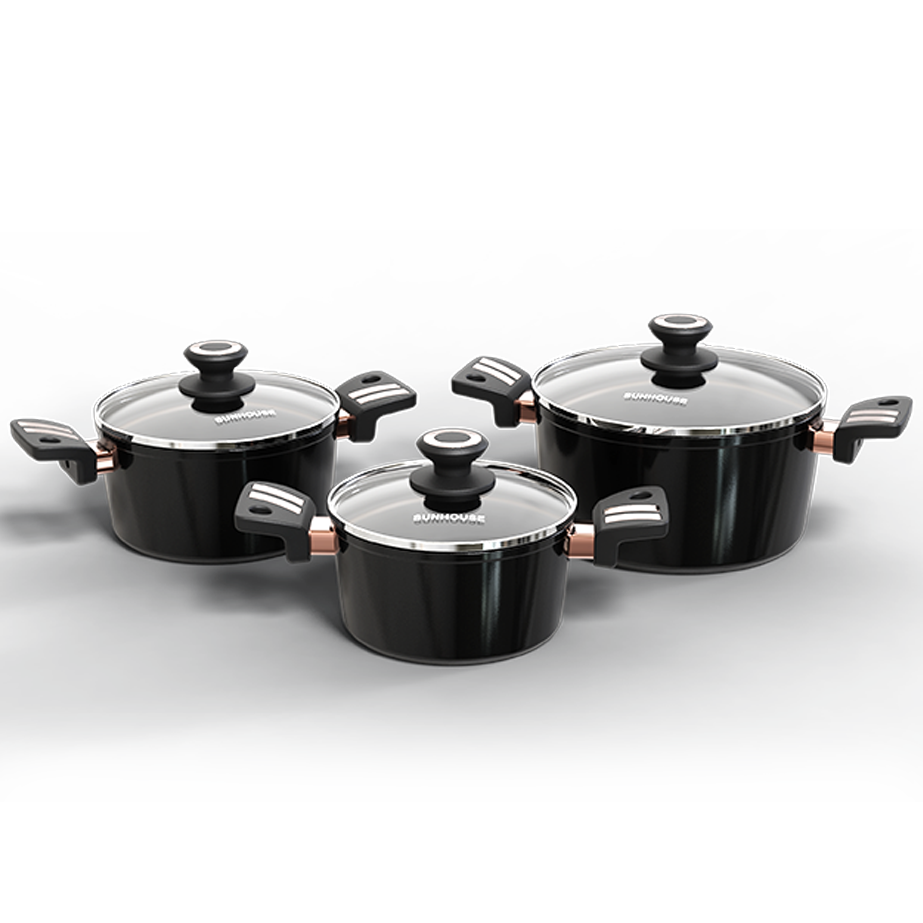 Bộ nồi chống dính Ultra Titanium SUNHOUSE ST2210B bao gồm 3 nồi với các kích cỡ khác nhau: 18 – 20 – 24 cm, phục vụ cho nhu cầu nấu các món ăn khác nhau như nấu canh, kho thịt, luộc ra,… Nấu nướng đa dạng món ăn chỉ với một bộ nồi.