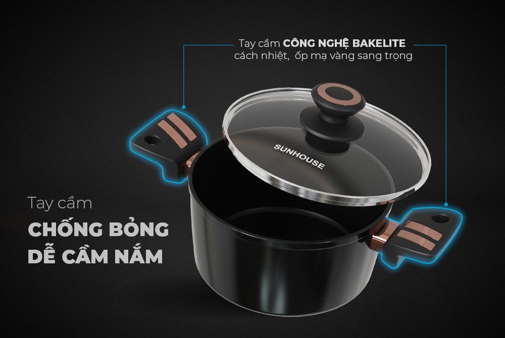 - Tay cầm bakelite chống bỏng, chống trơn trượt