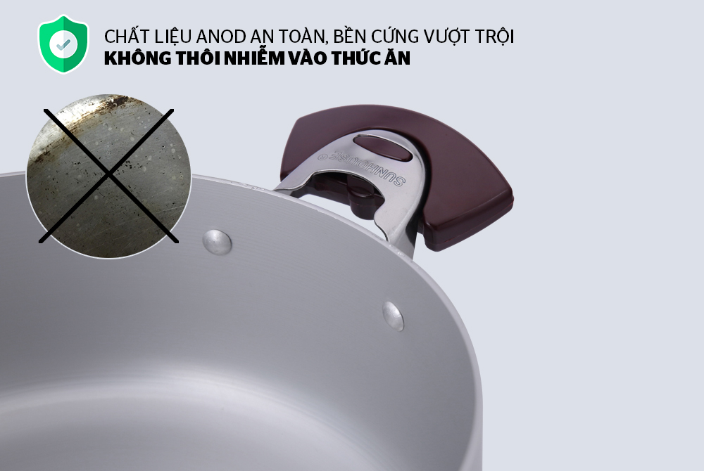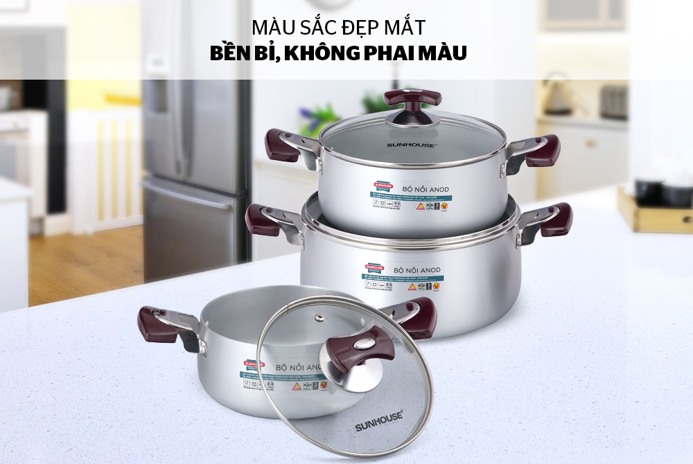 Ứng dụng công nghệ đó – SUNHOUSE cho ra đời bộ nồi Anod với độ bền cứng lâu dài cùng thiết kế tinh tế, sang trọng, là sự lựa chọn tối ưu cho mọi căn bếp gia đình.