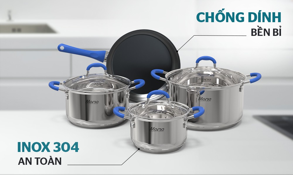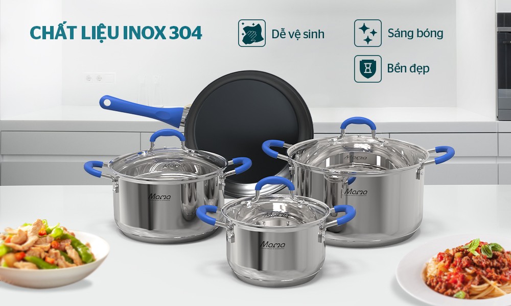 Yên tâm nấu nướng với bộ BỘ NỒI CHẢO INOX 5 ĐÁY SUNHOUSE MAMA SHG509 nhờ chất liệu inox304 can toàn cho sức khỏe - Nổi bật với đặc tính chống ăn mòn cao và không tác dụng với thức ăn, không thôi nhiễm, giải phóng các chất độc hại cho sức khỏe. Cùng với đó là chảo chống dính đi kèm, bắt nhiệt tốt, truyền nhiệt đều, bền bỉ cho ra những món ăn thơm ngon và an lành cho sức khỏe.