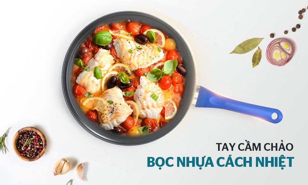 Ngoài ra, việc xào nấu ở nhiệt độ cao cũng thuận tiện và an toàn hơn khi tay cầm chảo được bọc nhựa cách nhiệt.