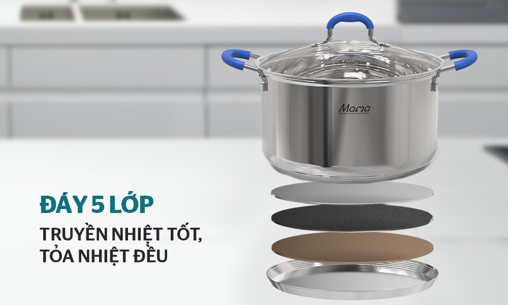 Đáy 5 lớp truyền nhiệt tốt, tỏa nhiệt đều