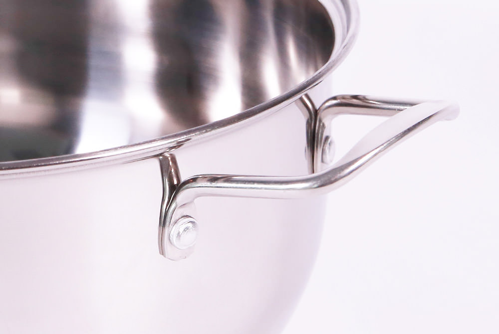Quai nồi: Quai đũa inox to bản, đinh tán chắc chắn, chịu lực, chịu nhiệt tốt