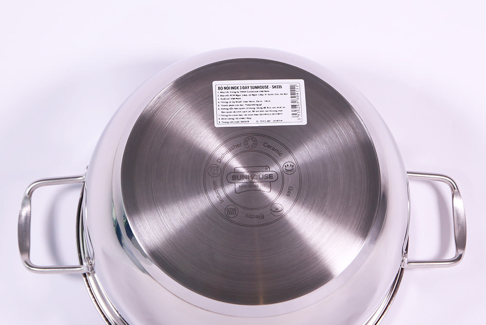 Với ưu điểm của chất liệu inox cao cấp là không bị oxy hoá, bộ nồi có độ bền vượt trội, không han gỉ, không bị oxy hóa nên rất an toàn cho sức khoẻ. Bạn hoàn toàn yên tâm sử dụng bộ nồi SUNHOUSE SH335 lâu dài để chế biến thật nhiều món ăn ngon cho gia đình.