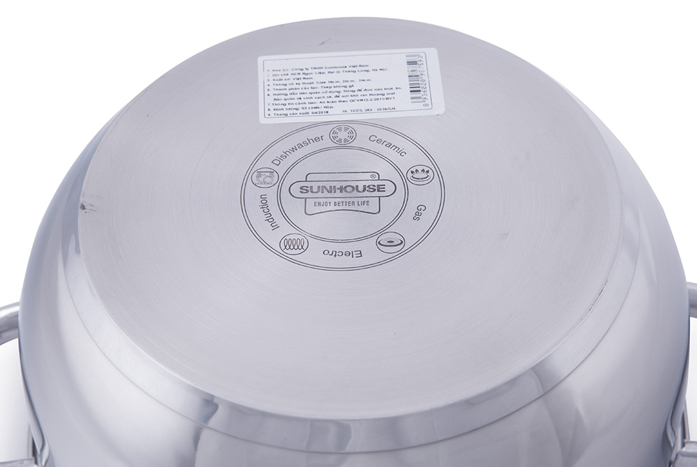 Với ưu điểm của inox bền bỉ, không han gỉ hay bị oxy hóa, bạn hoàn toàn yên tâm khi sử dụng bộ nồi SUNHOUSE SHG2303MRA lâu dài để chế biến thật nhiều món ăn ngon cho gia đình.