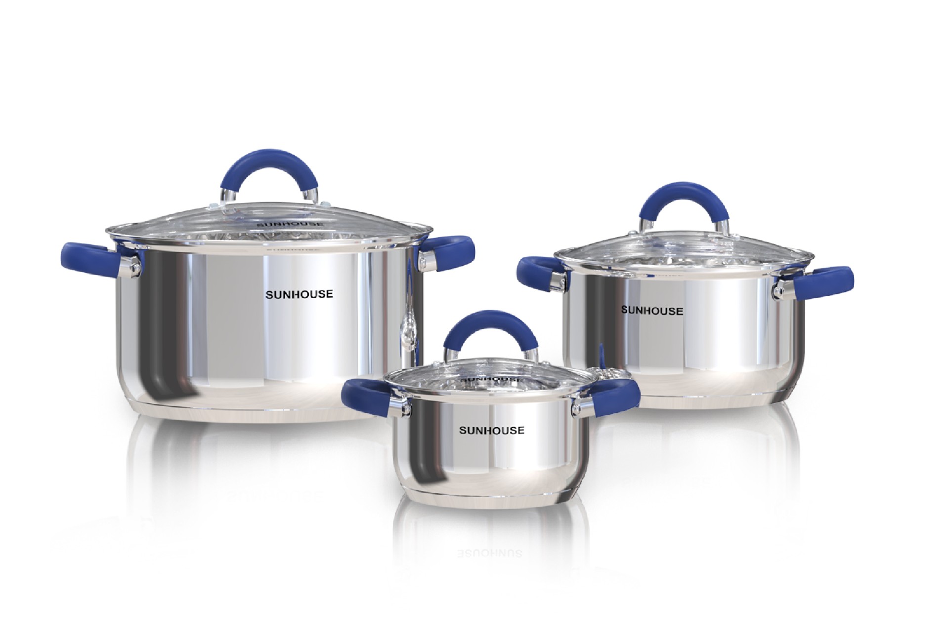 Bộ sản phẩm 03 nồi với 3 kích cỡ 16 – 20 – 24cm, phù hợp mọi nhu cầu nấu nướng của gia đình. Nồi nhỏ 16cm thích hợp luộc trứng, nấu soup, kho thịt; nồi 20 và 24cm có thể dùng để nấu canh hoặc soup tiện lợi.