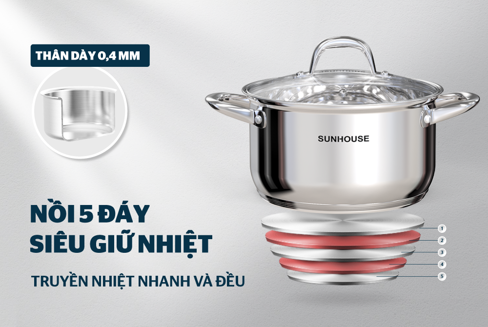 5 lớp đáy tỏa nhiệt đều, giữ nhiệt lâu