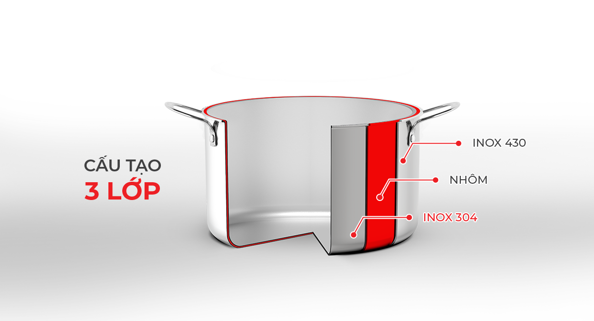 - Đối với nồi/chảo nhiều lớp đáy có khả năng giữ nhiệt tốt nên khi nấu, không cần để lửa to khi đồ ăn đã sôi.