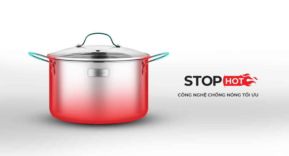 Phần quai cán của nồi Trimax sử dụng công nghệ "Stop Hot" chống nóng hiện đại giúp quai cán hạn chế bị nóng lên gây mất an toàn cho người sử dụng.