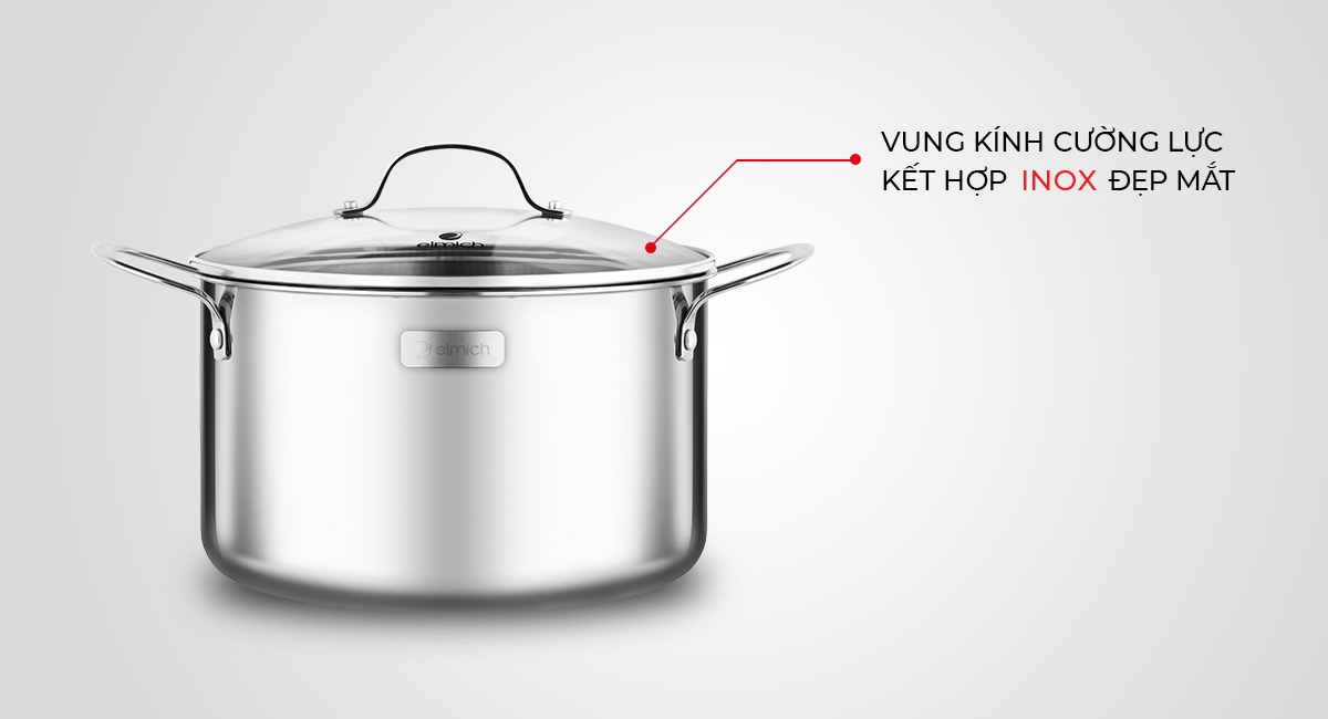 Trong cùng là lớp inox 304 cao cấp. Chính vì là phần tiếp xúc trực tiếp với thức ăn nên chất liệu mà Elmich sử dụng phải luôn đảm bảo an toàn cho sức khỏe cho dù được nung nóng ở nhiệt độ cao hay khi sử dụng lâu năm.