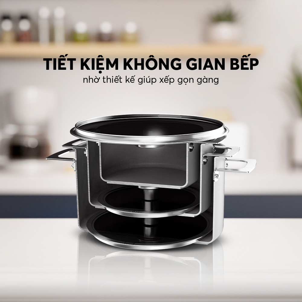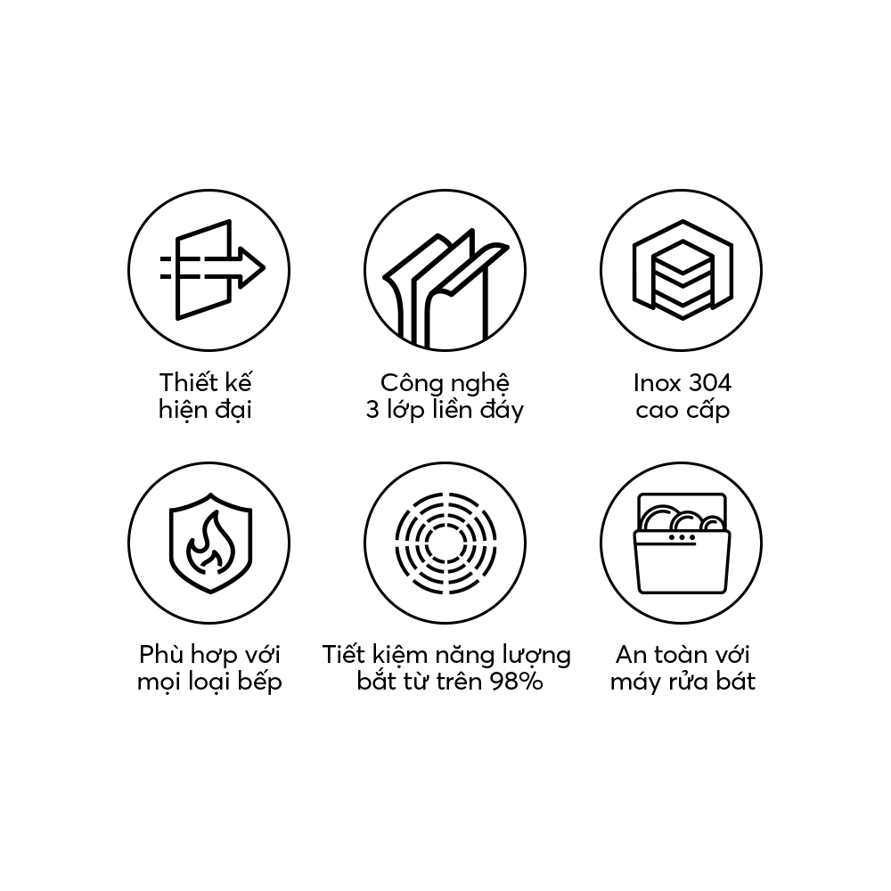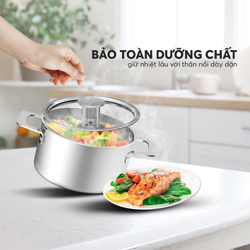 – Cấu tạo nguyên khối (đáy liền thân 3 lớp) giữ nhiệt tốt, truyền nhiệt nhanh