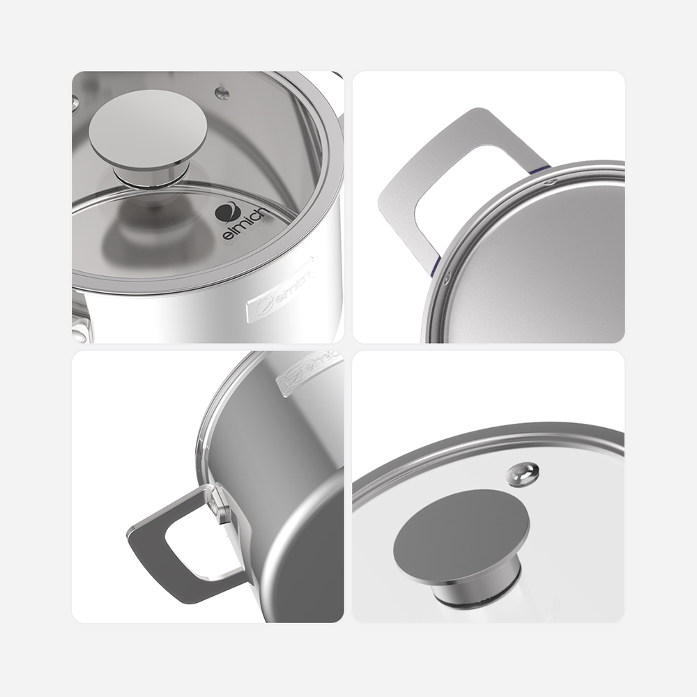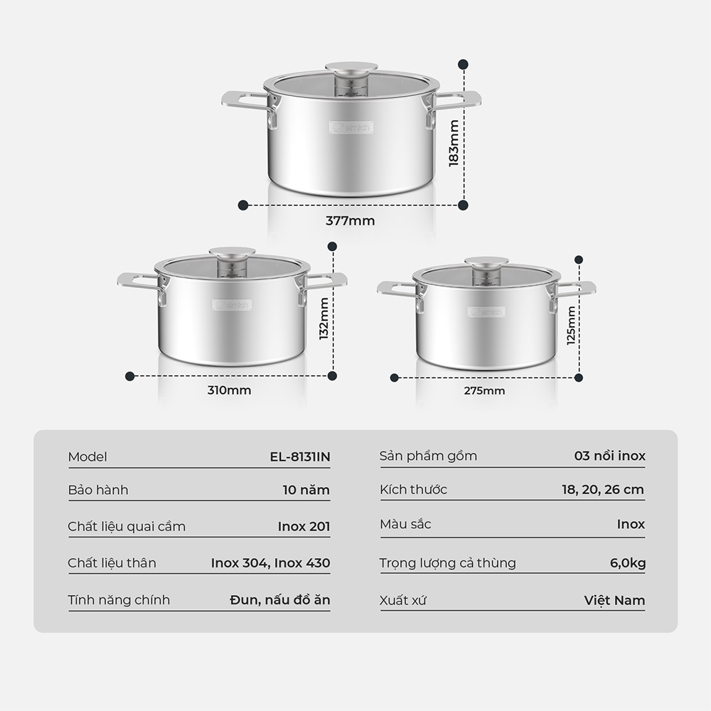 – Tay cầm, quai, bằng inox 201 sáng bóng, chắc chắn, an toàn.