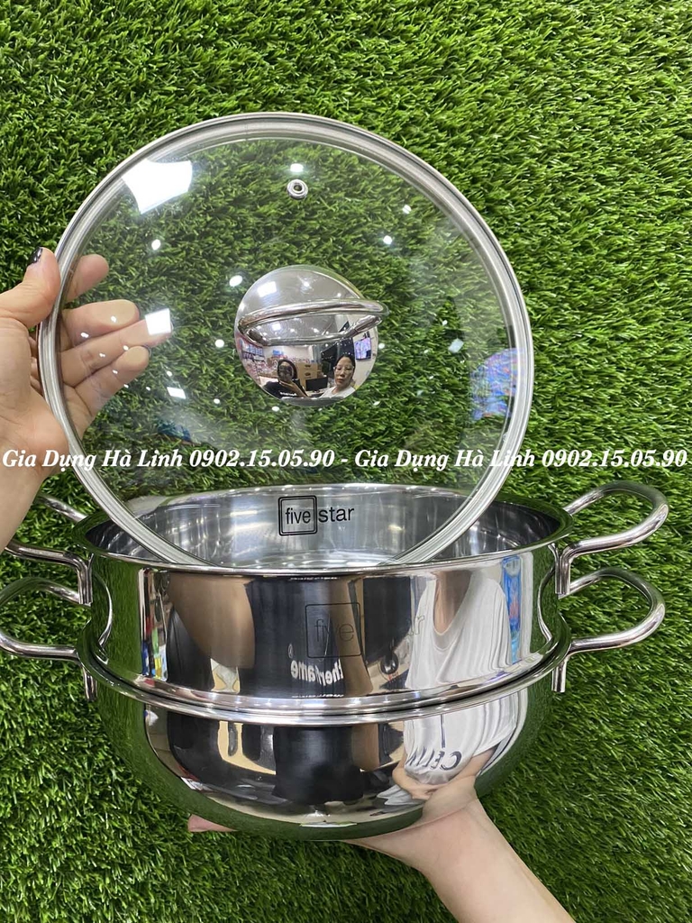 Bộ Nồi Xửng 3 Đáy Nắp Kính Fivestar có kiểu dáng sang trọng, được làm bằng chất liệu inox không bị oxy hóa, quai núm bằng inox, vung kính cường lực, bền đẹp. Bộ sản phẩm gồm một nồi và một xửng hấp nên có thể sử dụng cho nhiều mục đích nấu nướng tại gia đình.