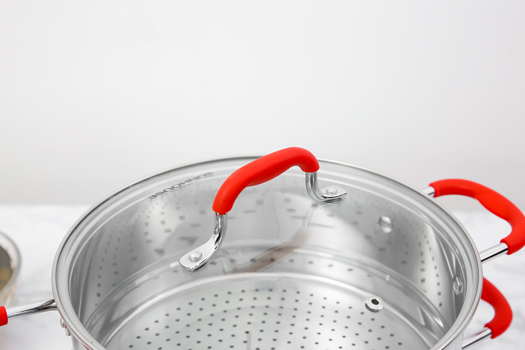 Bộ nồi xửng inox 5 đáy SUNHOUSE SHG507 được làm từ chất liệu inox cao cấp với thiết kế 5 lớp đáy giúp tỏa nhiệt đều và tăng khả năng giữ nhiệt. Ngoài ra, nhờ kết cấu đáy dày nên hạn chế được tình trạng cháy khét.