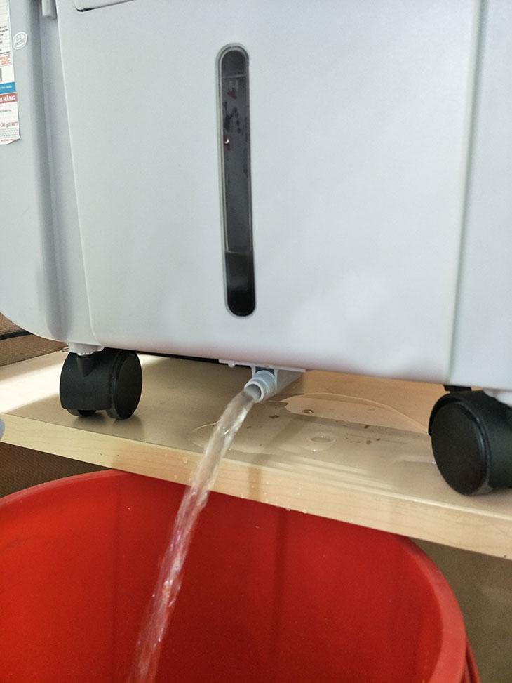 Làm sạch khay chứa bằng nước sạch (có thể dùng vòi xịt với áp lực nước yếu) và bàn chải lông mềm, lưu ý không nên xịt rửa mạnh tránh rách lưới bên trong (lưới này có tác dụng lọc bụi).