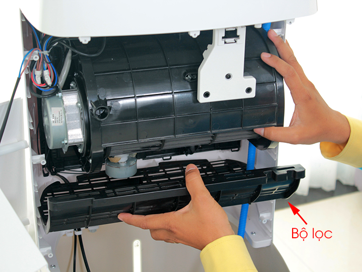 Tiến hành tháo khay chứa làm mát ra khỏi quạt điều hòa.