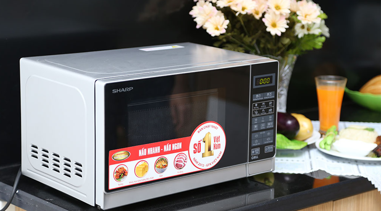 Đặc điểm: Ngoài các chức năng cơ bản rã đông, hâm nóng thức ăn còn thêm chức năng nướng (Grill) được thể hiện ở mặt bảng điều khiển.
