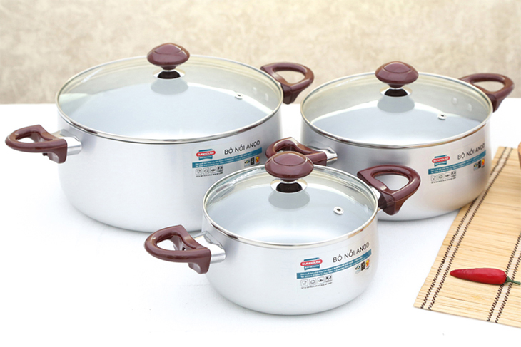 Nồi nhôm được xử lý oxi hóa: Chất liệu này được đánh giá cao hơn so với inox do việc được xử lý bằng các phản ứng tĩnh điện giúp “khóa” các tạp chất còn lại trong nhôm trong quá trình sản xuất như công nghệ Anodized, công nghệ mới trong sản xuất nồi sẽ tạo độ bền cao cũng như mang lại tính thẩm mỹ cho sản phẩm.