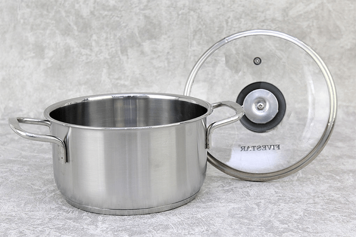 - Inox 304 (18% crom, 10% Niken): Không chứa tạp chất, khó oxy hóa, không phản ứng với thực phẩm, bề mặt sáng bóng, không bắt từ. Vì giá thành vật liệu cao nên được sử dụng cho gia dụng cao cấp. Thông thường những nồi chảo làm bằng inox 304 có phần đáy sẽ được thêm 1 lớp inox 430 để có thể sử dụng được trên bếp từ.