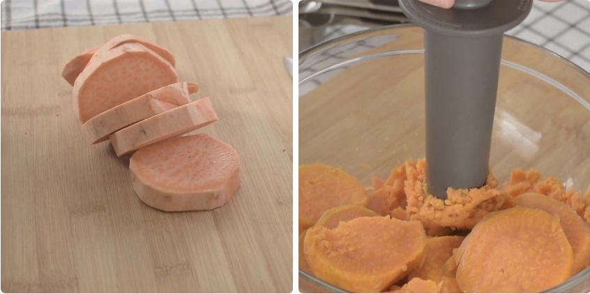 1. Hấp và nghiền khoai