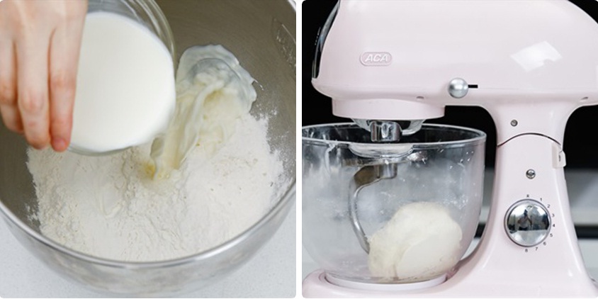 Mách nhỏ: Nếu không có máy trộn, bạn có thể dùng tay nhồi bột cũng được nhé!