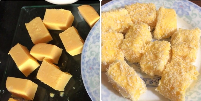 Cắt bánh sữa ra thành nhiều viên nhỏ.