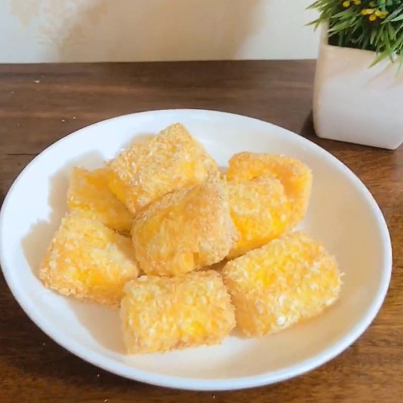 Áo bánh sữa lần lượt theo thứ tự: 1 lớp bột ngô, 1 lớp trứng gà, 1 lớp bột chiên xù.