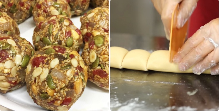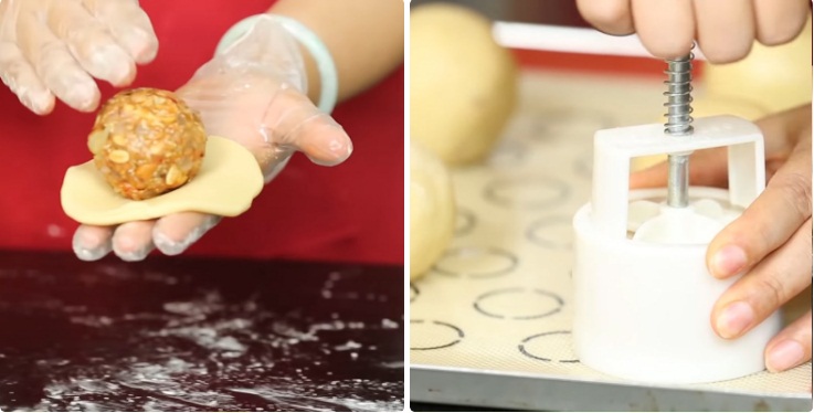 Phần nhân bánh: Vo tròn nhân bánh và chia đều mỗi viên với trọng lượng 100gr.