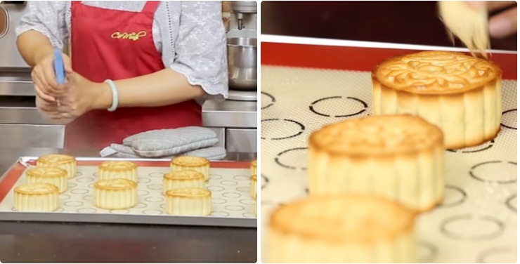Không quét quá dày sẽ làm bánh bị mất nét và nứt khi nướng.