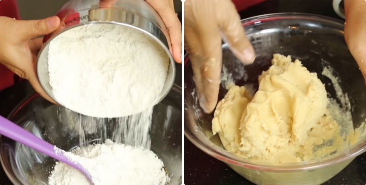 Phần vỏ bánh: Nhào bột thật kĩ và chia đều thành mỗi phần trọng lượng 50gr.