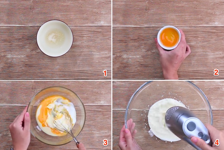 Dụng cụ thực hiện: Máy đánh trứng, nồi, bếp, muỗng...