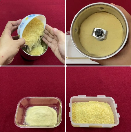Phần 2 : Bạn lấy bột chiên xù (không xay nhỏ) cho vào hộp loại có nắp đậy.