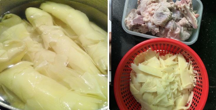 - Luộc măng chín mềm với nước vo gạo, sau đó rửa lại 2 - 3 lần nước là có thể mang đi chế biến.
