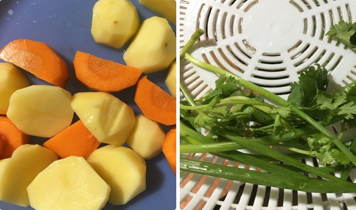 - Khoai tây và cà rốt gọt vỏ, rửa sạch rồi cắt miếng vừa ăn.
