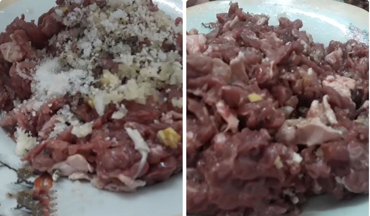 - Ướp bò với 1/3 muỗng cà phê gừng băm, 1/2 muỗng canh tỏi băm, 1/3 muỗng cà phê tiêu, 1 muỗng cà phê hạt nêm, 1 muỗng cà phê đường, 1 muỗng cà phê nước mắm, sau đó trộn đều và để bò thấm gia vị trong 30 phút.