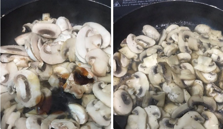 - Nêm thêm 1 muỗng cà phê hạt nêm và 1 muỗng cà phê dầu hào vào phần nấm rồi tiếp tục đảo đều trên bếp khoảng 1 phút cho tan hết gia vị thì tắt bếp.