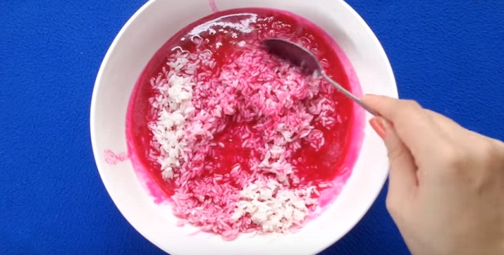 Nếp sau khi ngâm xong bạn vo lại lần nữa, sau đó đổ phần nước thanh long đã lọc vào trộn chung với nếp ngâm thêm 1 tiếng để nước thanh long ngấm vào hạt nếp, khi nấu xôi sẽ có màu đỏ cam rất đẹp.