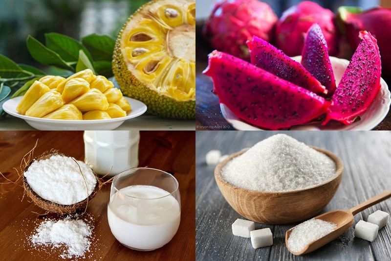 - Thanh long ruột đỏ 300 gr (có thể thay thế bằng lá dứa tạo màu xanh hoặc gấc tạo màu đỏ).