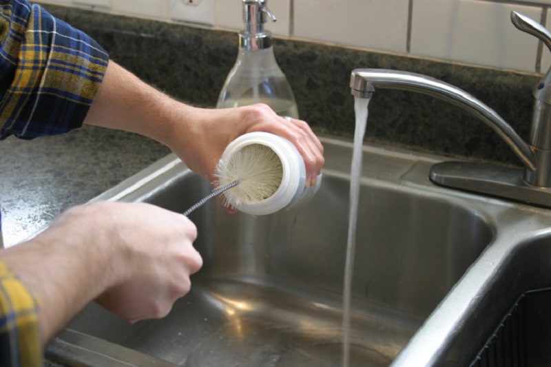 Khi đựng nước lọc thông thường, bình chỉ cần dùng nước rửa chén rửa sạch và lau khô hoặc để khô tự nhiên là có thể sử dụng. Sau khi trữ các thức uống giữ mùi, giữ cặn khác, bình cần được làm sạch kỹ lưỡng hơn để không ẩm mốc, sinh khuẩn và ảnh hưởng đến lần sử dụng sau.