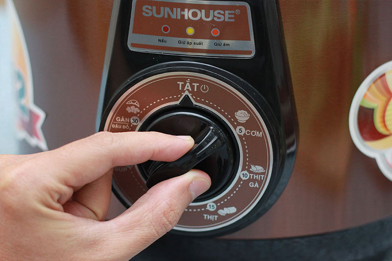 Cho đến khi nghe tiếng cạch, tức là nắp nồi đã được đóng và khóa an toàn.