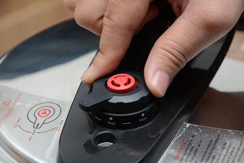 Lắp van xả áp suất vào. Đặt van xả áp suất vào đúng vị trí “Sealed” và kiểm tra van phao đã hạ xuống hay chưa (van phao hạ xuống trước khi nồi tỏa nhiệt).