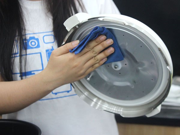 Bước 5: Dùng vải mềm thấm nước vắt ẩm lau sạch phần nắp nồi.