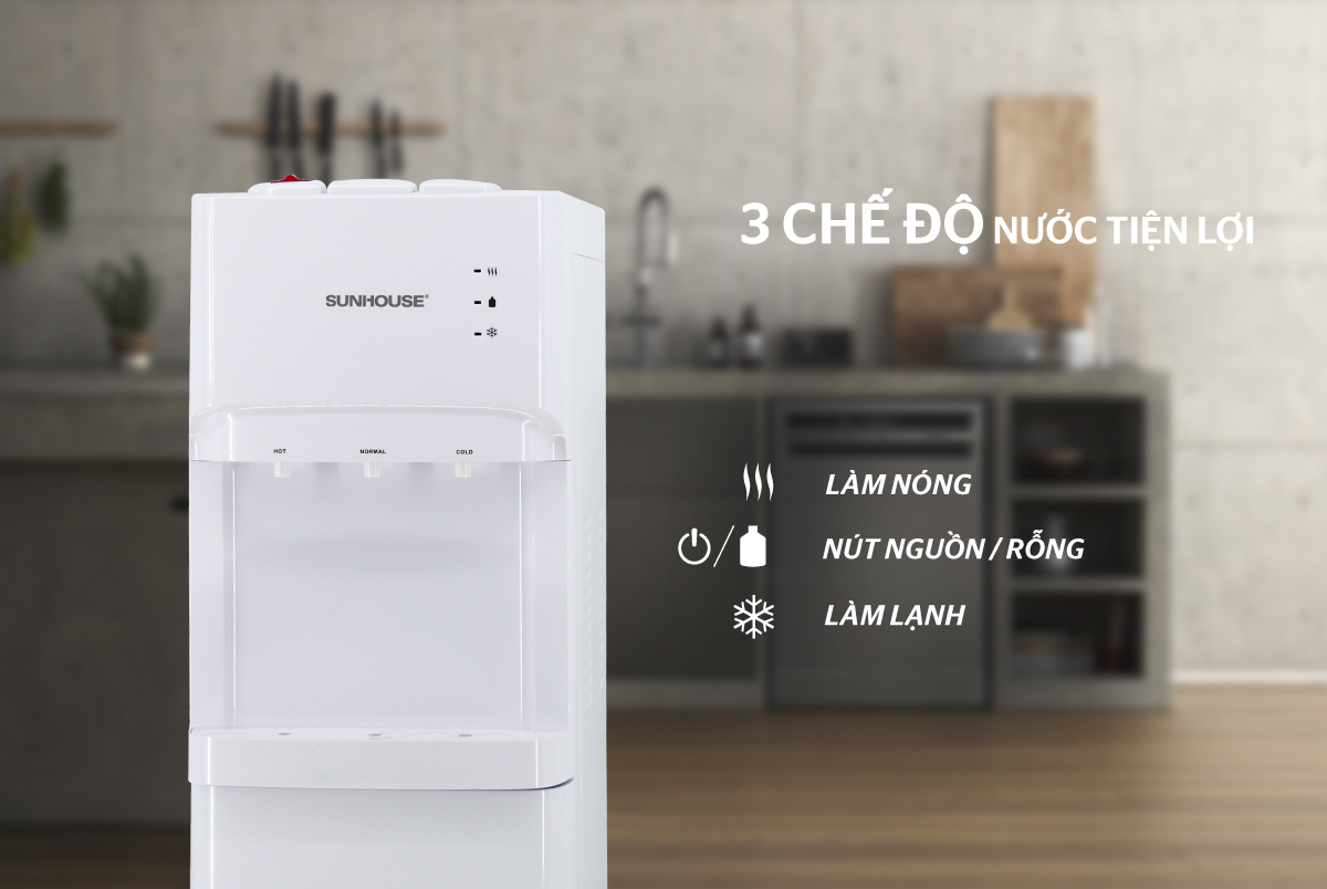 Được trang bị 3 vòi nước nóng – lạnh – thường kết hợp với công suất tương đối lớn nên có thể đun sôi hoặc làm lạnh nhanh, giúp bạn nhanh chóng có nước lạnh để giải khát hoặc nước nóng để pha trà, pha cà phê hoặc nấu mỳ.