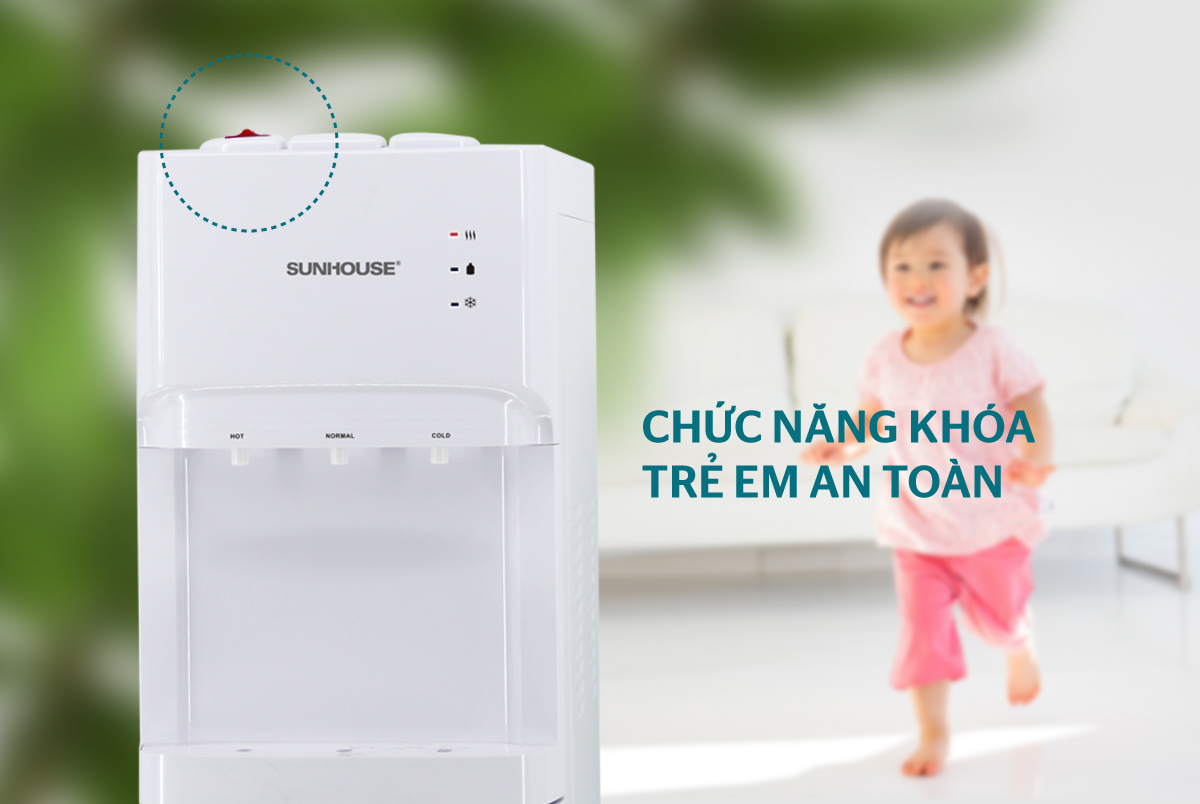 Cây nước nóng lạnh SHD9633 còn được trang bị thêm tính năng khóa các nút tính năng khi hoạt động, đảm bảo an toàn cho những gia đình có trẻ nhỏ