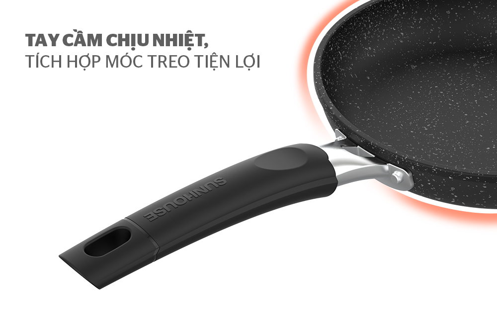 Chảo cạn là nhóm sản phẩm chiếm tỉ trọng lớn trong danh mục sản phẩm chảo chống dính SUNHOUSE. Từ kích cỡ đường kính, độ cao thành chảo đều rất hợp lý khi sử dụng với nhiều nhu cầu khác nhau, từ chiên rán tới các món xào với lượng thức ăn vừa đủ. Đặc biệt, chảo chống dính đáy từ SUNHOUSE SHG1118MBB sử dụng chống dính vân đá an toàn, đem đến độ bền bỉ cao, giúp bạn thoải mái biến tấu các món ngon cho bữa cơm gia đình.