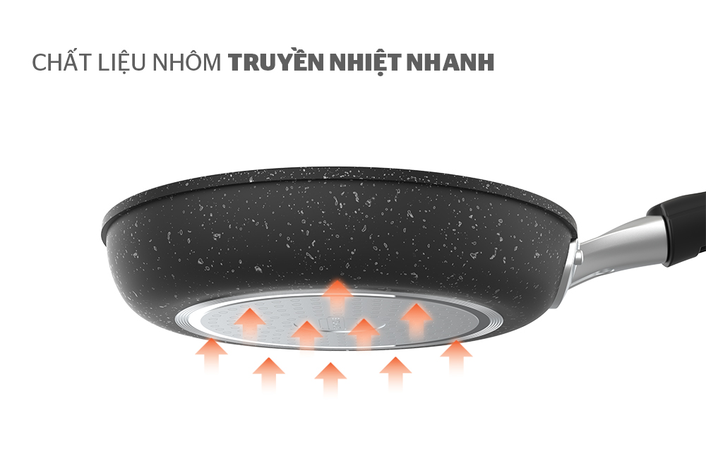 Đặc điểm khác: Chất liệu nhôm dày dặn, tỏa nhiệt đều; Chống dính vân đá an toàn cho sức khỏe